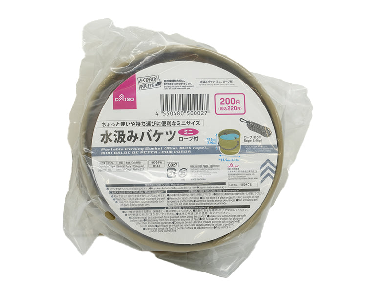 通常サイズの水くみバケツの約1/3ほどのサイズですが、ちょっとした掃除や手を洗いたい場合や移動が多い(ランガン)などに使い勝手がよいコンパクトさが最大の売り。