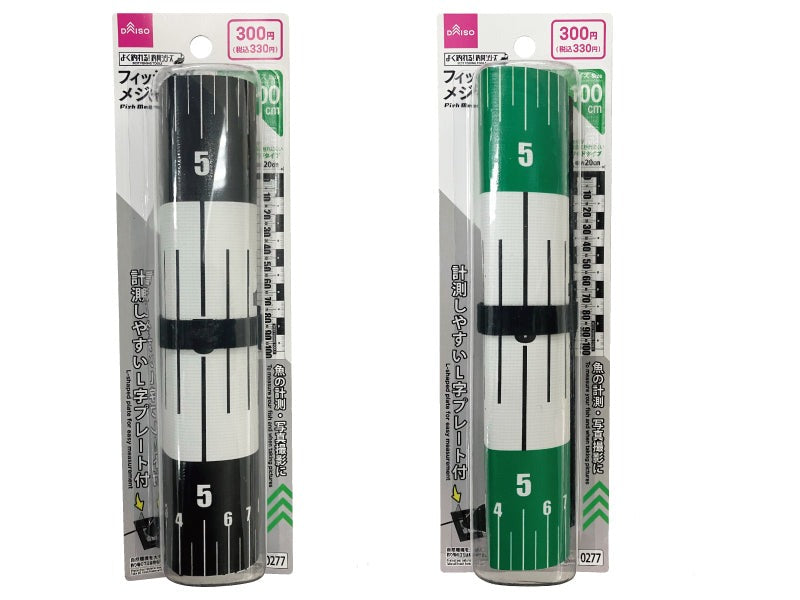 ダイソーのフィッシングメジャーは普段使わない時にはマジックテープでコンパクトに丸めておくことができ、最大100cmまでの測定が可能な便利なアイテムです。