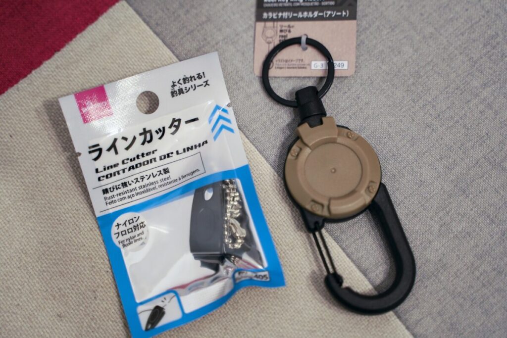 特にダイソーのラインカッターと組み合わせて、フィッシングバックやフィッシングベストへ装着すれば、いつでも手を伸ばしてすぐに糸を切ることができます。