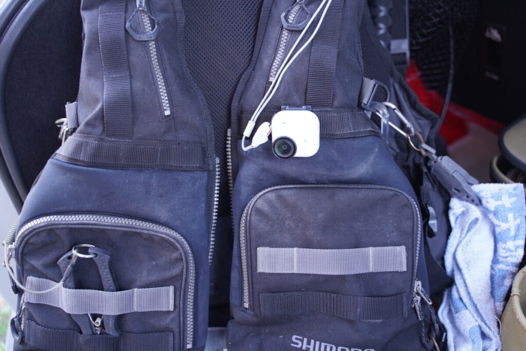 マウントは首元にロックしたあとはボタンを押さない限り外れることがありませんし、ほとんどのフィッシングベストとの干渉もありませんでした。
